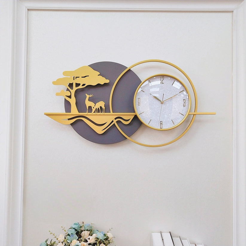 Landscape with golden deer imported wall clock