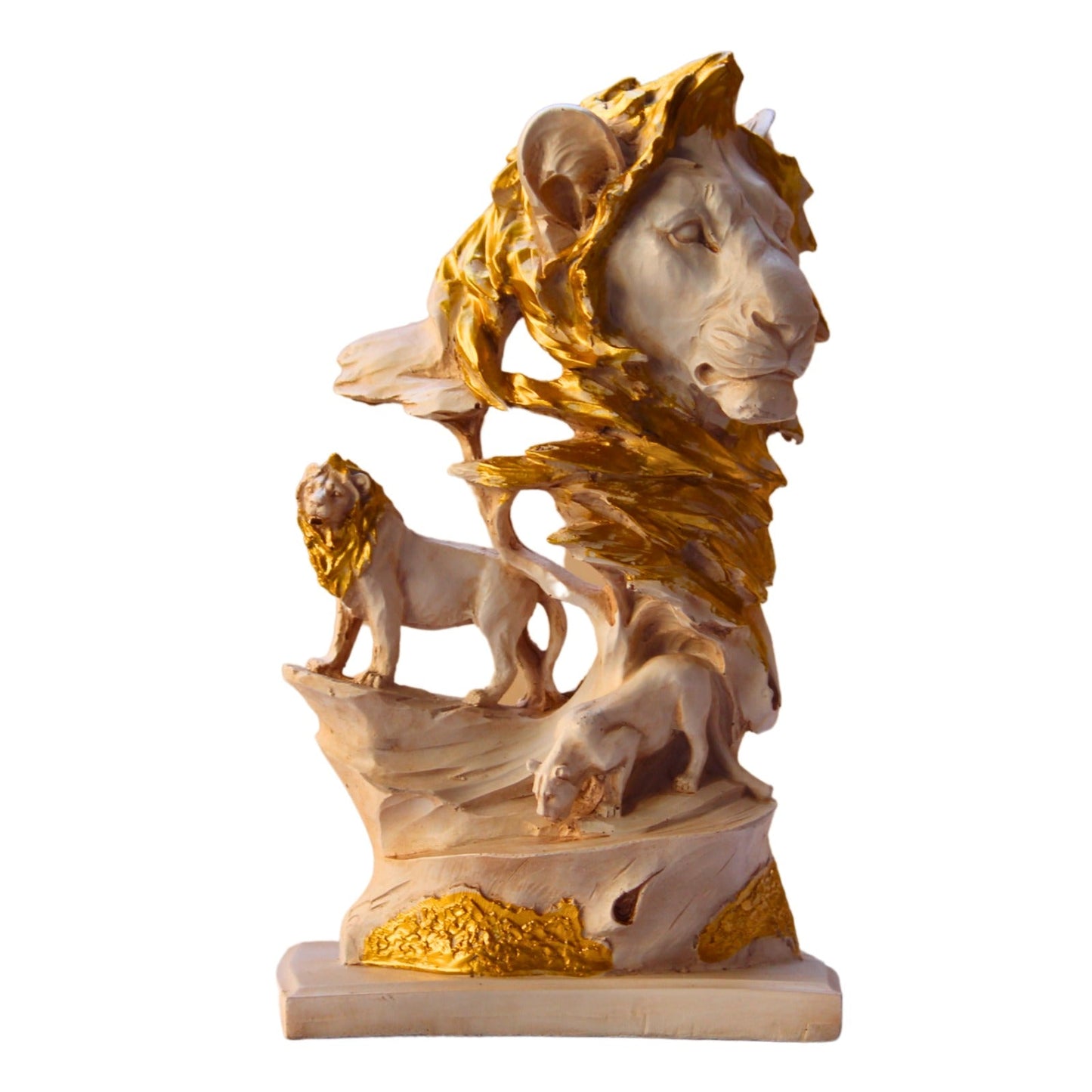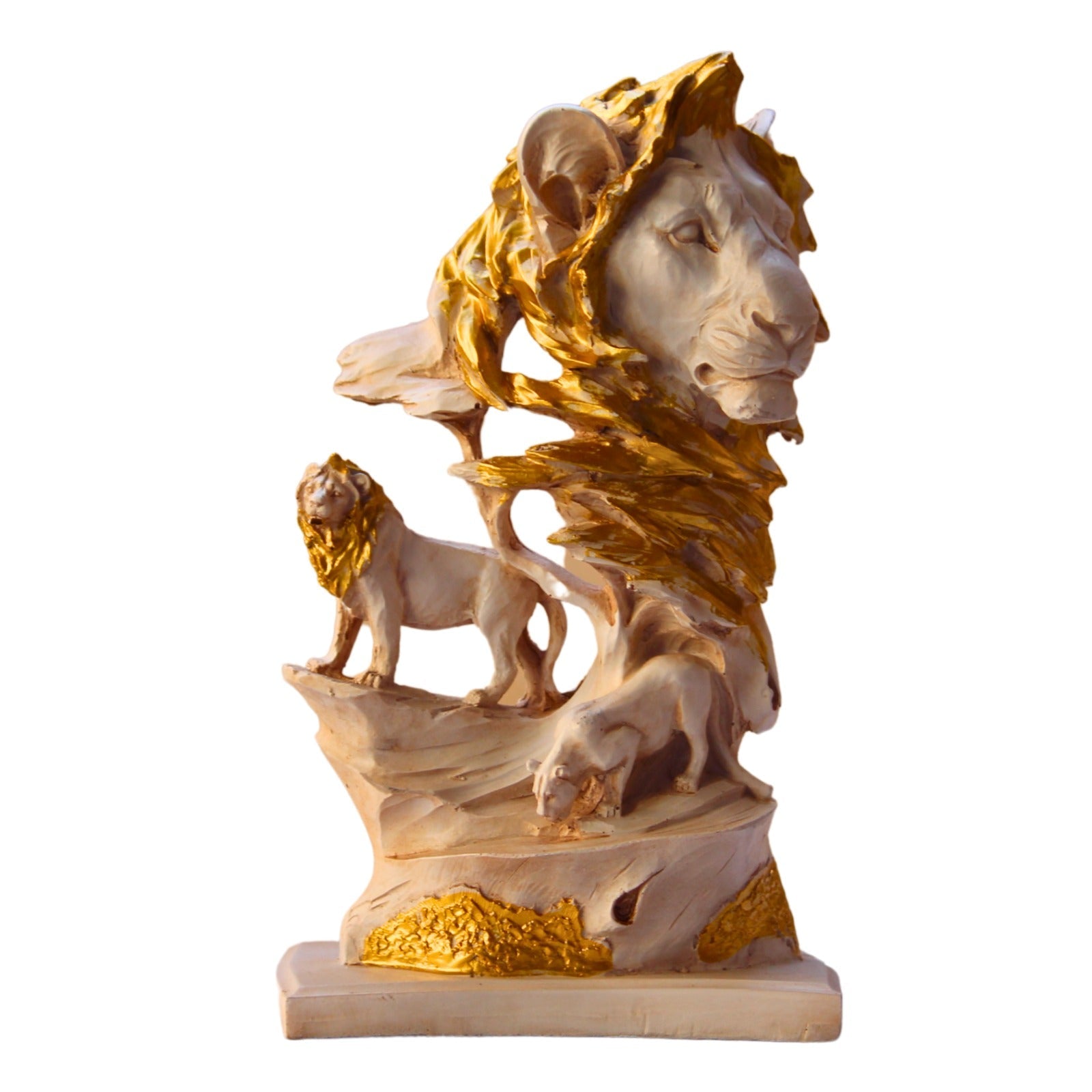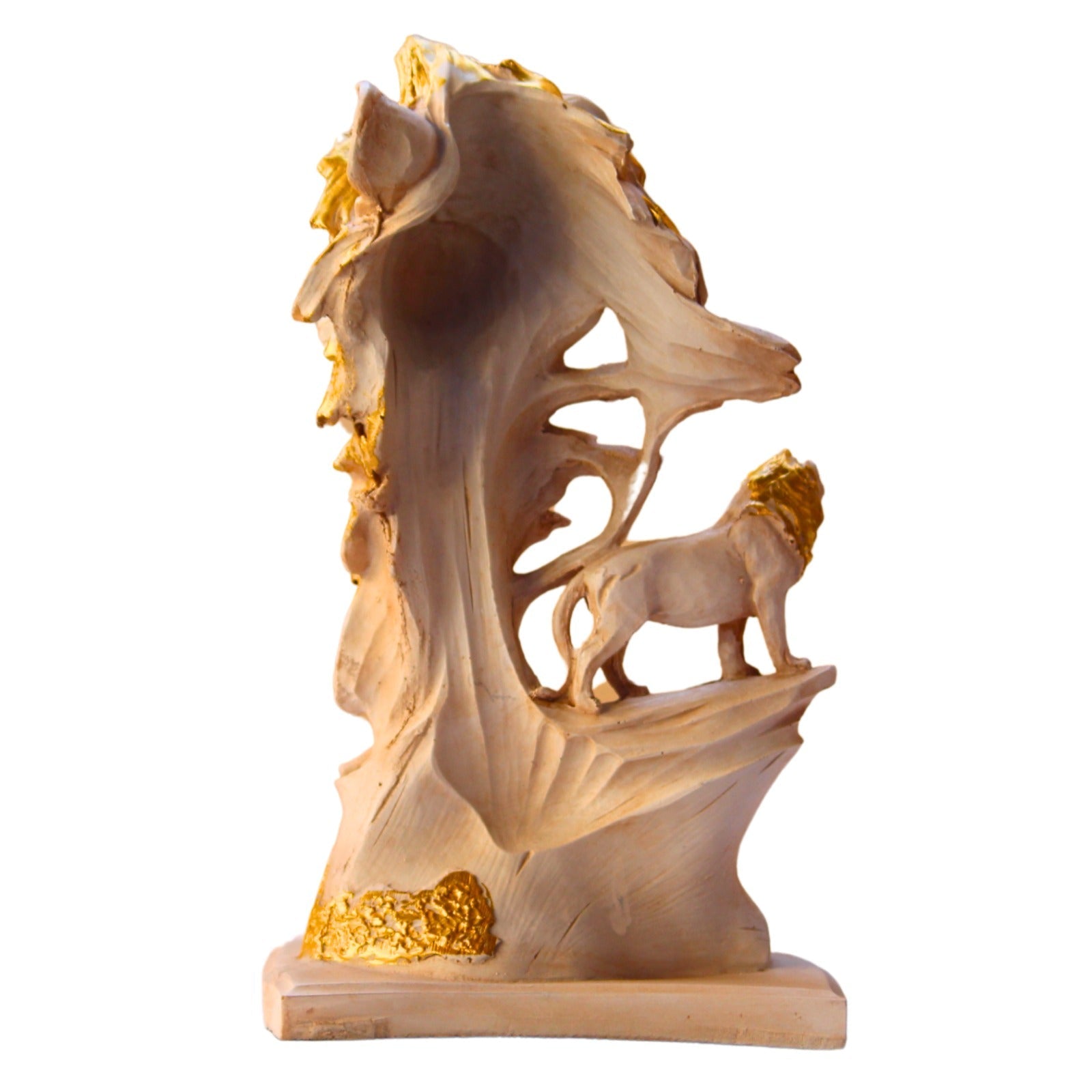 - MATERIAL: Golden Lion is hand-cast with crushed stone and bonded with resin. This table accent will work well with natural materials like wood and brass