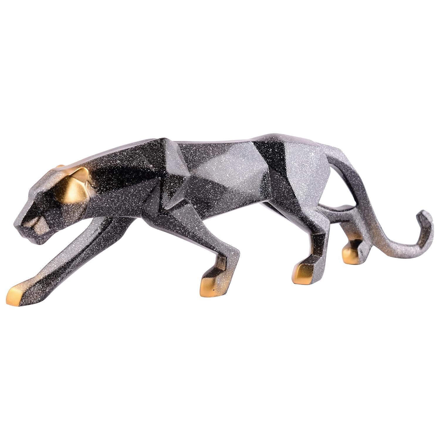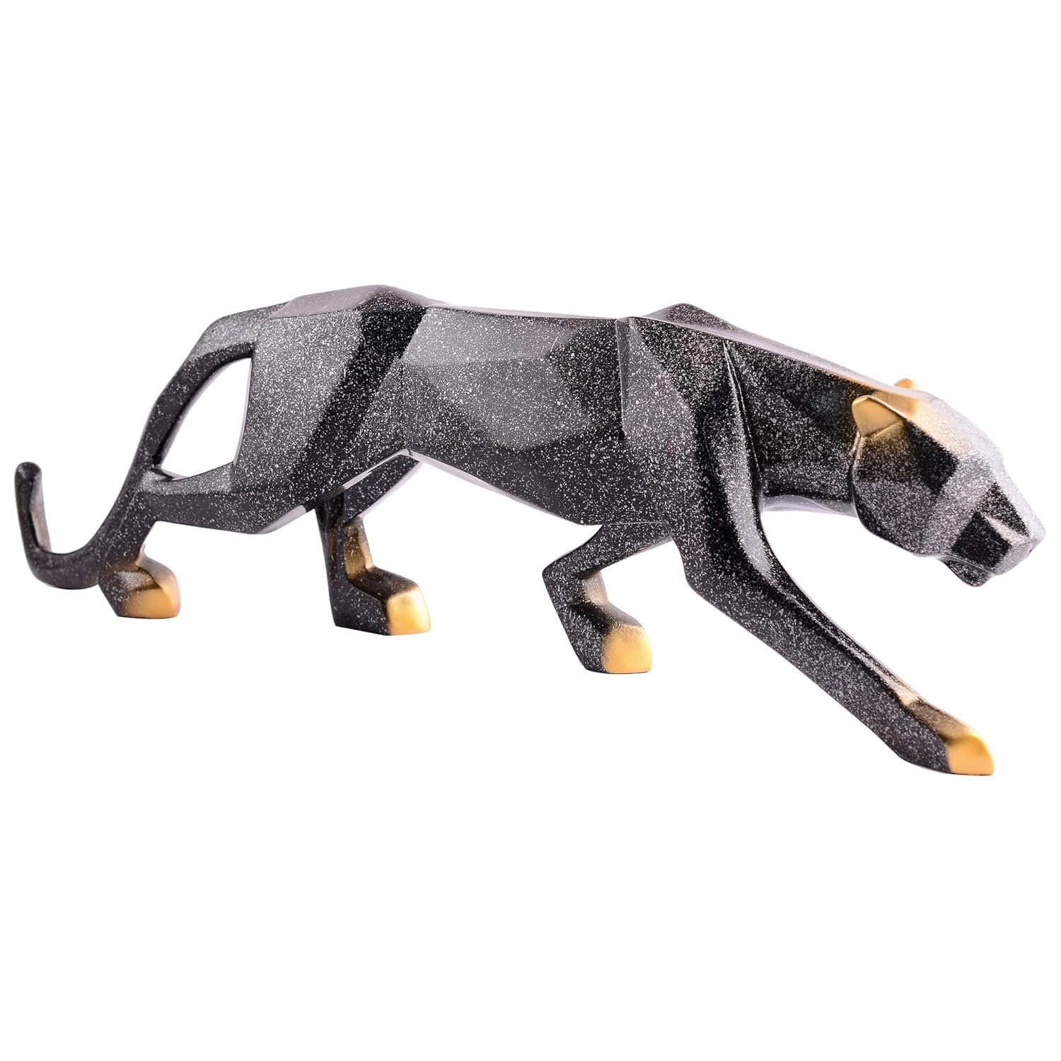 - DESIGN: Modern geometric panther sculpture featuring a sleek, angular design with a striking black and gold colour scheme