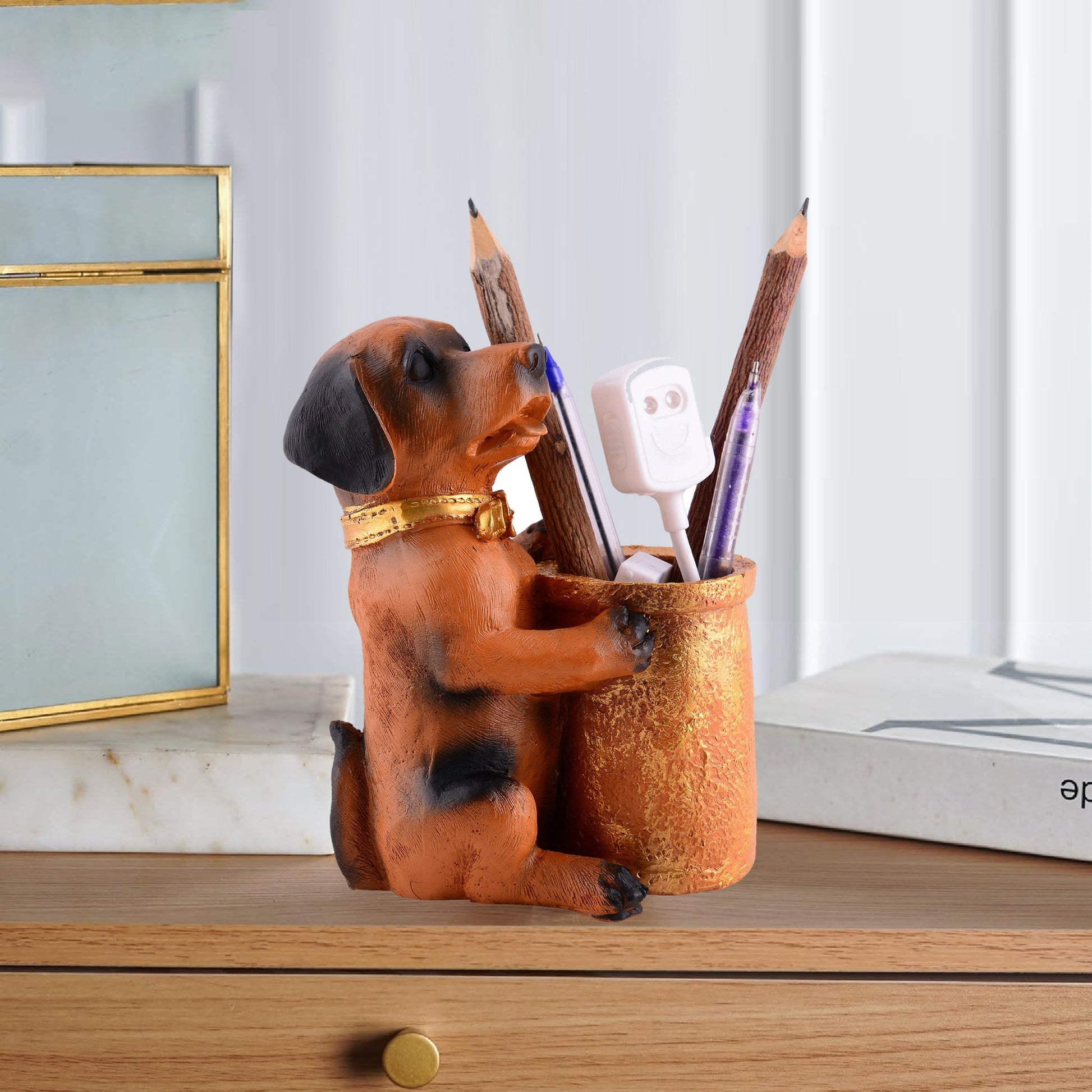 - Adorable Desk Companion: Features a playful dachshund dog holding pencils and an eraser, bringing a fun and charming touch to any desk or study space.